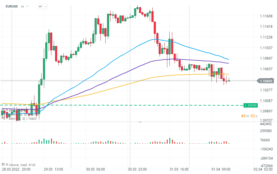 El par EURUSD no reaccionó significativamente al dato de ISM de hoy. Fuente: xStation 5