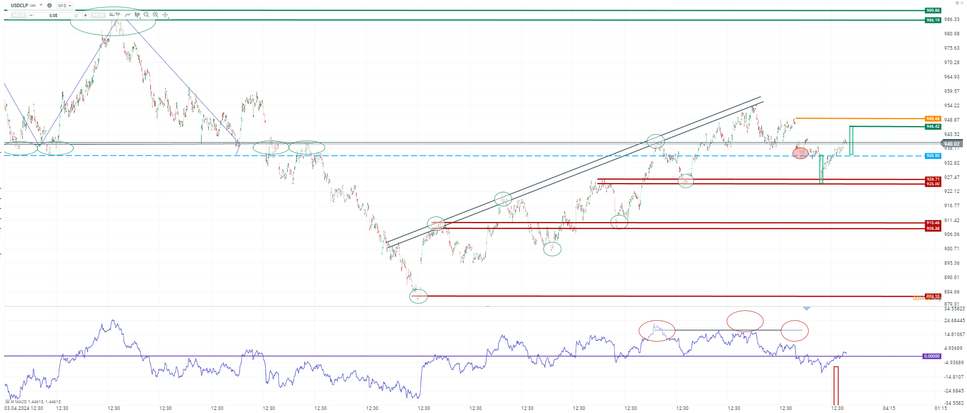 Para esta semana, el jueves se publicará el IPC de EE.UU. a las 8:30 AM hora chilena. De mantenerse una inflación muy alta, considerando ya la disminución en la creación de empleos, podría abrir la puerta a recortes de tipos por parte de la FED, lo que podría llevar al tipo de cambio a escenarios bajistas en torno a los $925 pesos por dólar.