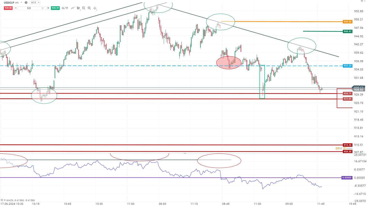Por el contrario, si la inflación es mayor de lo previsto o persiste en Estados Unidos, nuestro par de divisas podría encontrar soporte alrededor de los 940. Esto contempla un escenario con datos macroeconómicos desfavorables en China y una recuperación más sólida en el índice del dólar, respaldada por los comentarios recientes de los miembros del FOMC y los datos de inflación que se conocerán este jueves.