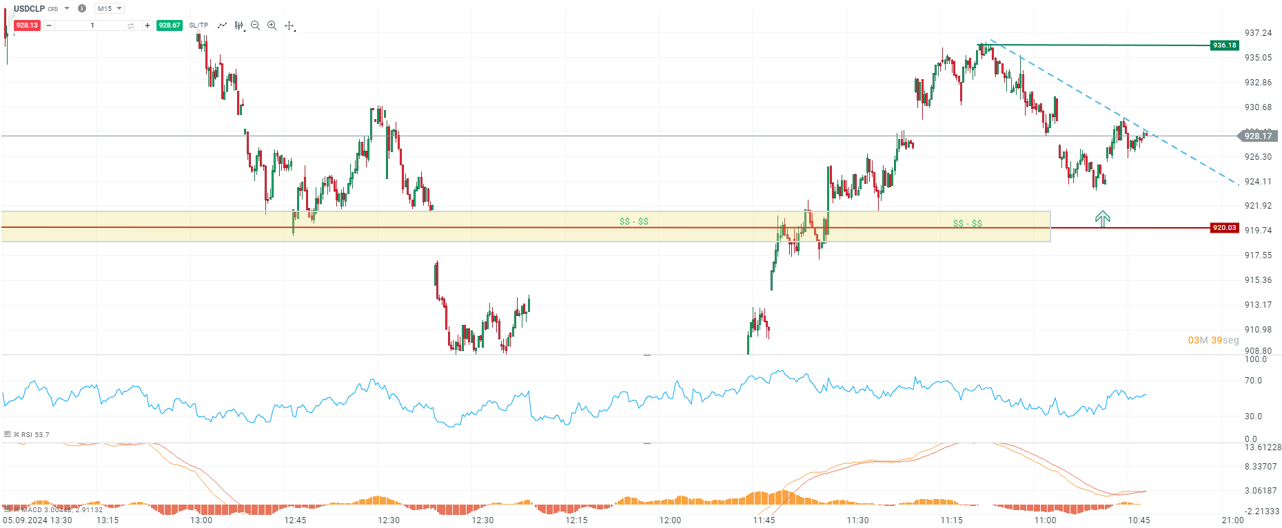 Durante la jornada del lunes, el tipo de cambio entre el peso chileno y el dólar osciló entre $925 y $929 por dólar. Para la sesión de mañana, se espera que el tipo de cambio fluctúe entre $925 y $932, a la espera de más declaraciones de funcionarios clave de la FED, como Raphael Bostic.