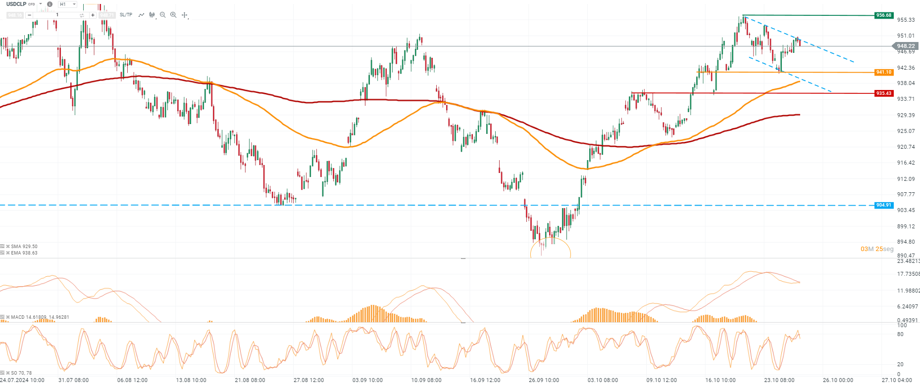 Estímulos en China: Nuevas medidas de apoyo al sector inmobiliario en China podrían incrementar la demanda de commodities, especialmente del cobre, reforzando la expectativa de un tipo de cambio más bajo si estos estímulos materializan un aumento en la demanda.