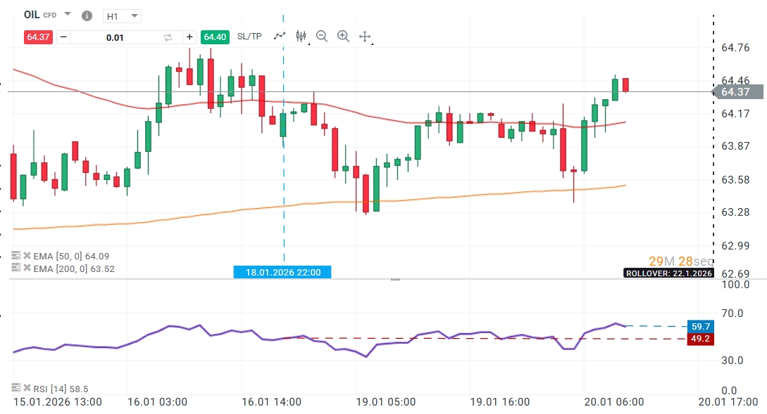 Al cierre de este reporte (10:30 GMT-3), el Brent cotiza en los US$ 64, registrando un avance diario del +0,37%. Técnicamente, el activo muestra un impulso moderado, con un RSI situándose en torno a los 60 puntos, lo que sugiere una tendencia saludable con espacio de recorrido antes de alcanzar niveles de saturación o sobrecompra.