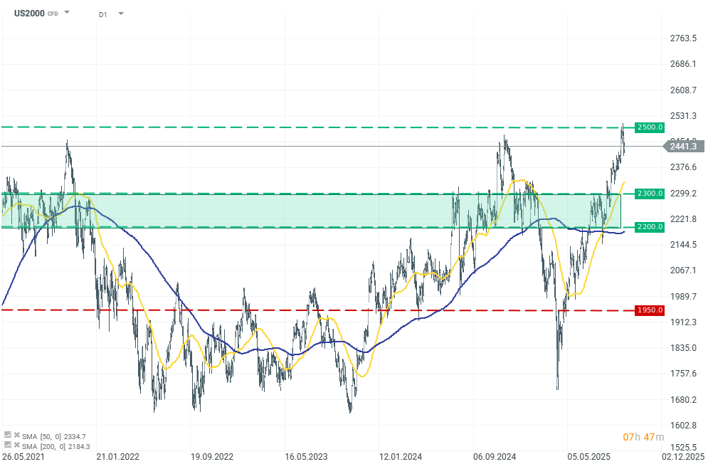 El índice de small caps registra su primera corrección de mayor calado desde comienzos de agosto. Al mismo tiempo, la actual presión vendedora responde a la prueba de los máximos históricos por encima de los 2.470 puntos.