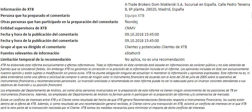 "Este informe se proporciona sólo con fines de información general y con fines educativos. Cualquier opinión, análisis, precio u otro contenido no constituyen asesoramiento de inversión o recomendación en entendimiento de la ley de Belice. El rendimiento en el pasado no indica necesariamente los resultados futuros, y cualquier persona que actúe sobre esta información lo hace bajo su propio riesgo. XTB no aceptará responsabilidad por ninguna pérdida o daño, incluida, sin limitación, cualquier pérdida de beneficio, que pueda surgir directa o indirectamente del uso o la confianza de dicha información. Los contratos por diferencias (""CFDs"") son productos con apalancamiento y acarrean un alto nivel de riesgo. Asegúrese de comprender los riesgos asociados. "