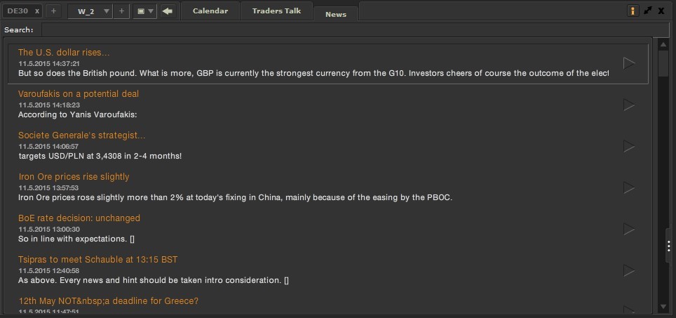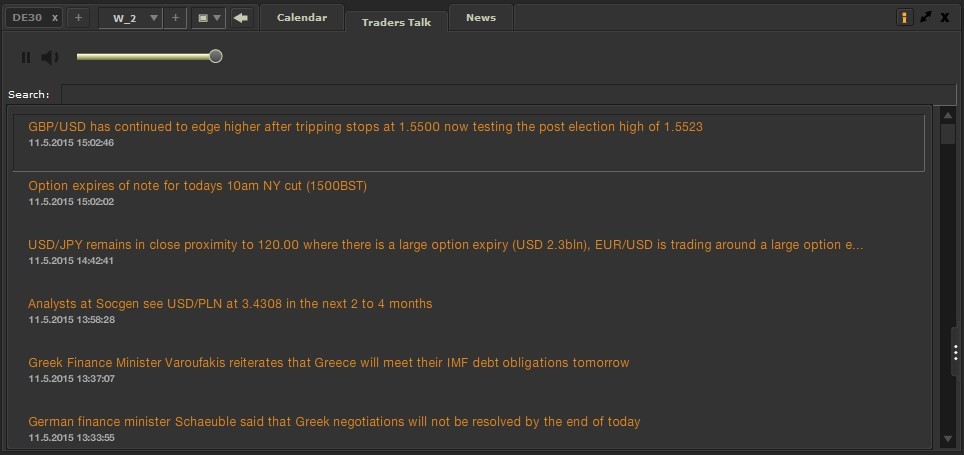 Puedes utilizar con facilidad la plataforma a la vez que sintonizas el Chat de Traders, un feed de audio que te ofrece comentarios de mercado y actualizaciones de eventos a medida que van teniendo lugar. El calendario es excelente para trades que se mueven según publicaciones de datos económicos, y te da la posibilidad de controlar tu operativa desde un sólo lugar.