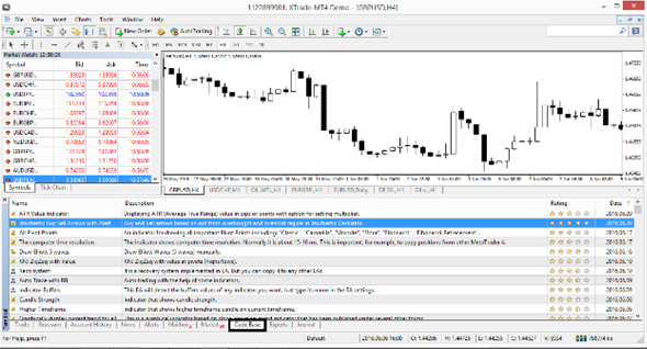 1. Cuando haya ingresado en la plataforma MT4, seleccione la pestaña "Code Base” en la parte inferior de la plataforma. Una vez hecho esto, podrá ver una lista completa de las muchas herramientas de análisis técnico disponibles que están libres para añadir a su plataforma.