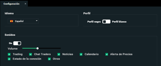 Podrá cambiar el fondo de la plataforma entre blanco y negro si lo desea en el apartado configuración