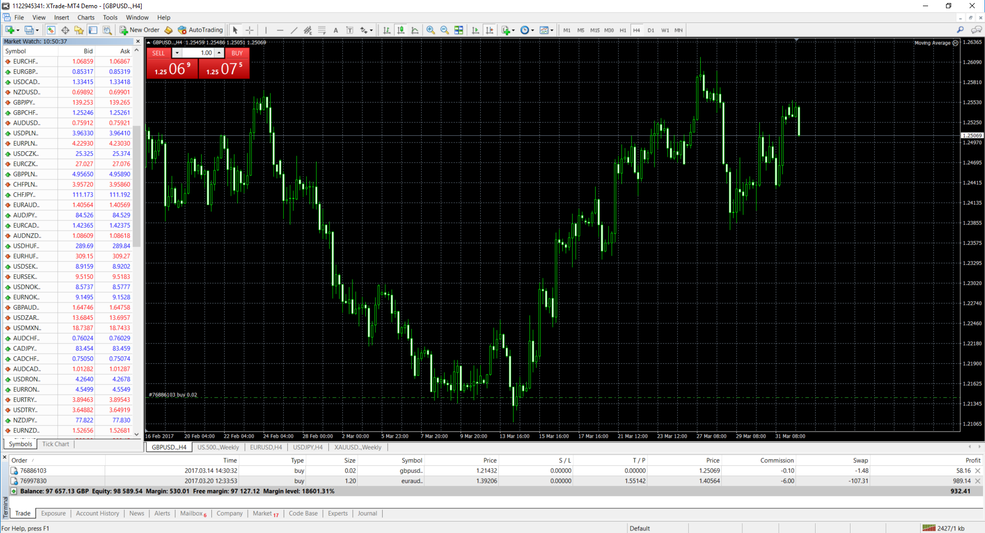 La plataforma MT4 te permite personalizar de forma sencilla la apariencia de los gráficos para adaptarlos a tus necesidades, y puedes guardar los cambios para que aparezcan por defecto cada vez que accedes a la plataforma. Además, puedes introducir una nueva orden directamente desde cualquier gráfico en tan solo unos segundos.