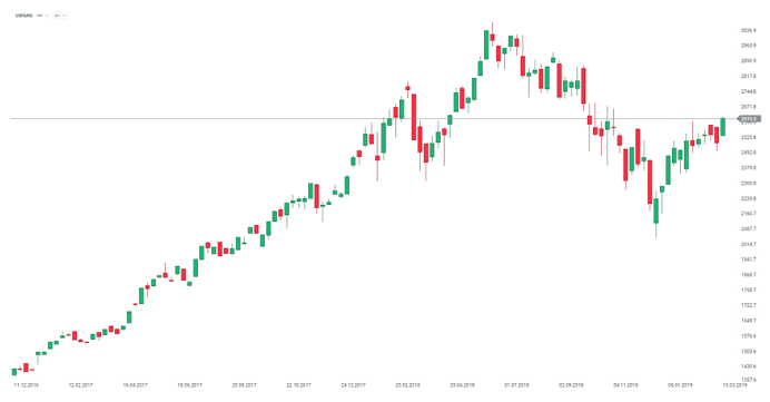 A pesar de la fuerte corrección de 2018, el NYSE FANG+ obtuvo una rentabilidad del 23.3% anual entre septiembre de 2014 (fecha de inicio) y finales de febrero de 2019. USFANG es un CFD basado en ese índice que está disponible en la plataforma xStation. Tenga en cuenta que los datos presentados se refieren a rendimiento pasados y, por lo tanto, no garantizan rentabilidades futuras