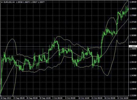 En la Figura 3, presentada a continuación, podemos observar que las bandas de Bollinger ofrecieron una señal muy clara de venta cuando el precio se cerró por debajo de la banda inferior (Punto 1 en la Figura 2). El trader debería conseguir un beneficio bruto superior a 120 cuando el TP se disparo el 7 de octubre de 2013 y el precio se cerró sobre la línea media de la media móvil simple de 20 días.