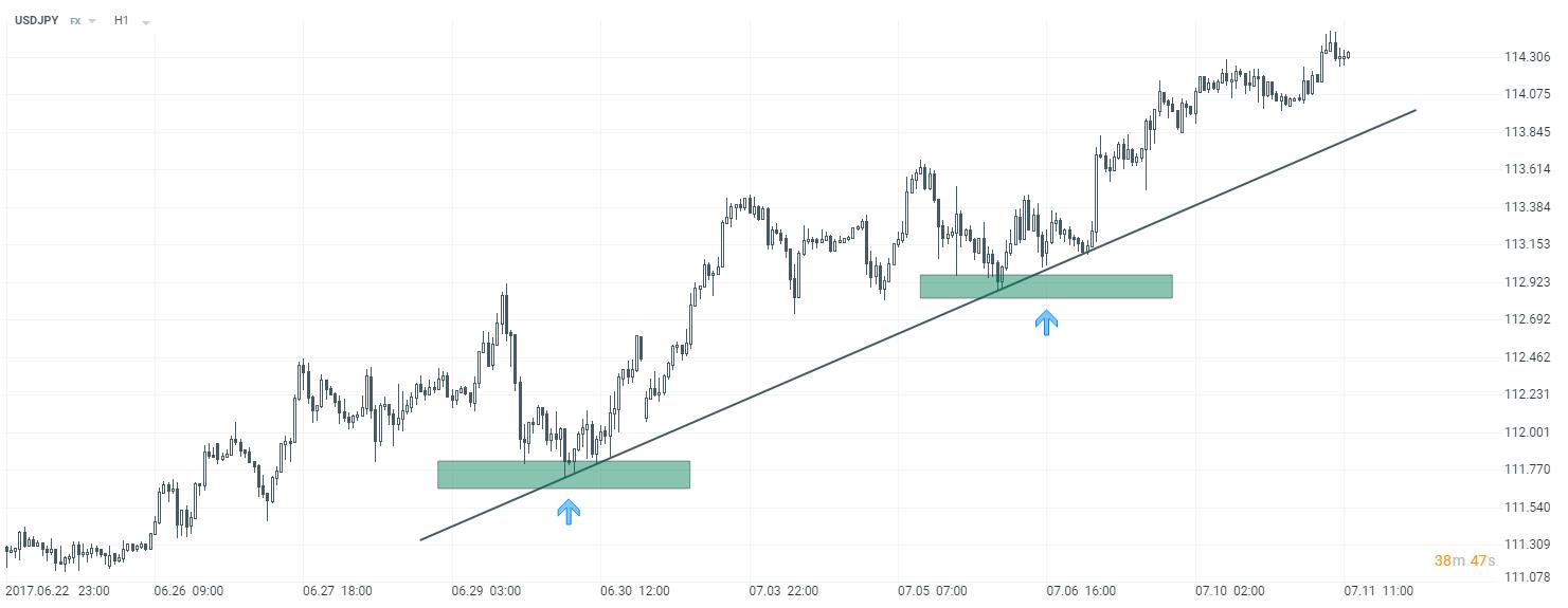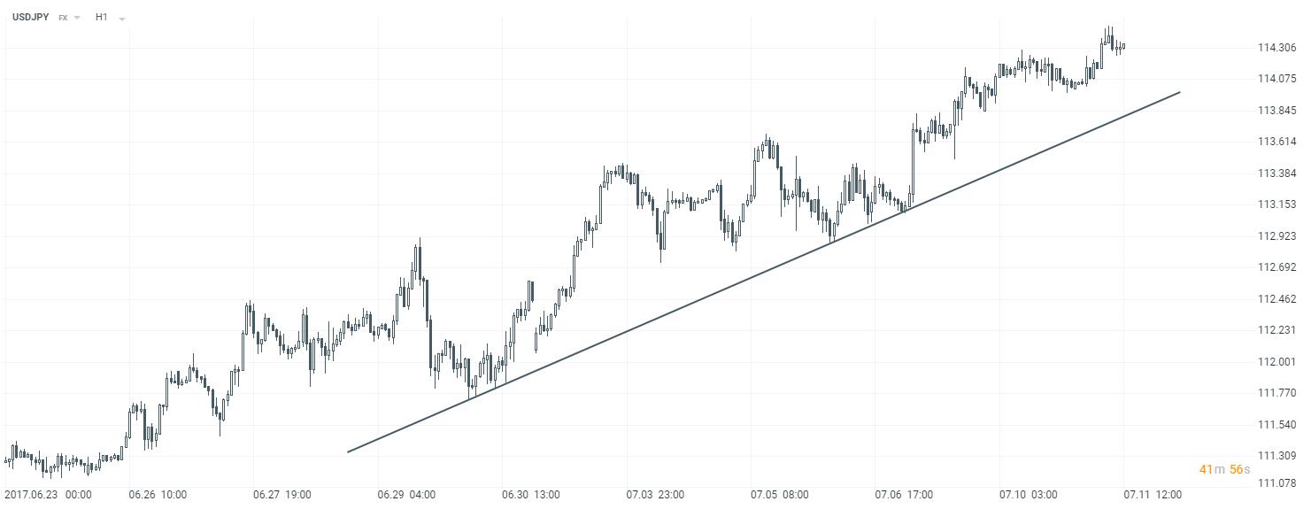 El análisis técnico convencional dice que durante una tendencia alcista, los compradores empujan los precios, llevando los valores a máximos cada vez mayores. Esto también se aplica durante una tendencia a la baja, donde los traders toman operaciones de ventas llevando los mínimos cada vez menores. Por eso, la forma más fácil de identificar una tendencia consiste en conectar dos máximos o mínimos con una línea.