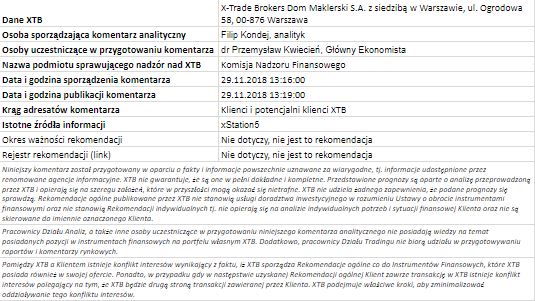 Ta publikacja handlowa jest informacyjna i edukacyjna. Nie jest rekomendacją inwestycyjną ani informacją rekomendującą lub sugerującą strategię inwestycyjną. W materiale nie sugerujemy żadnej strategii inwestycyjnej ani nie świadczymy usługi doradztwa inwestycyjnego. Materiał nie uwzględnia indywidualnej sytuacji finansowej, potrzeb i celów inwestycyjnych klienta. Nie jest też ofertą sprzedaży ani subskrypcji. Nie jest zaproszeniem do nabycia, reklamą ani promocją jakichkolwiek instrumentów finansowych. Publikację handlową przygotowaliśmy starannie i obiektywnie. Przedstawiamy stan faktyczny znany autorom w chwili tworzenia dokumentu. Nie umieszczamy w nim żadnych elementów oceniających. Informacje i badania oparte na historycznych danych lub wynikach oraz prognozy nie stanowią pewnego wskaźnika na przyszłość. Nie odpowiadamy za Twoje działania lub zaniechania, zwłaszcza za to, że zdecydujesz się nabyć lub zbyć instrumenty finansowe na podstawie informacji z tej publikacji handlowej. Nie odpowiadamy też za szkody, które mogą wynikać z bezpośredniego czy też pośredniego wykorzystania tych informacji. Inwestowanie jest ryzykowne. Inwestuj odpowiedzialnie.