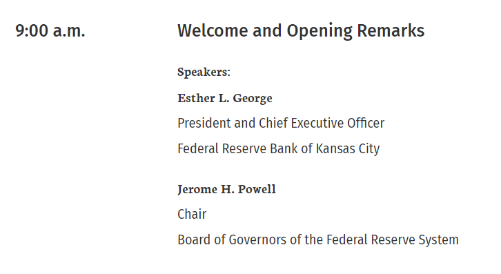 15:00 Otwarcie sympozjum przez szefową Fed z Kansas City, Esther George (w agendzie George jest wymieniona razem z Powellem, możliwe wcześniejsze wystąpienie)