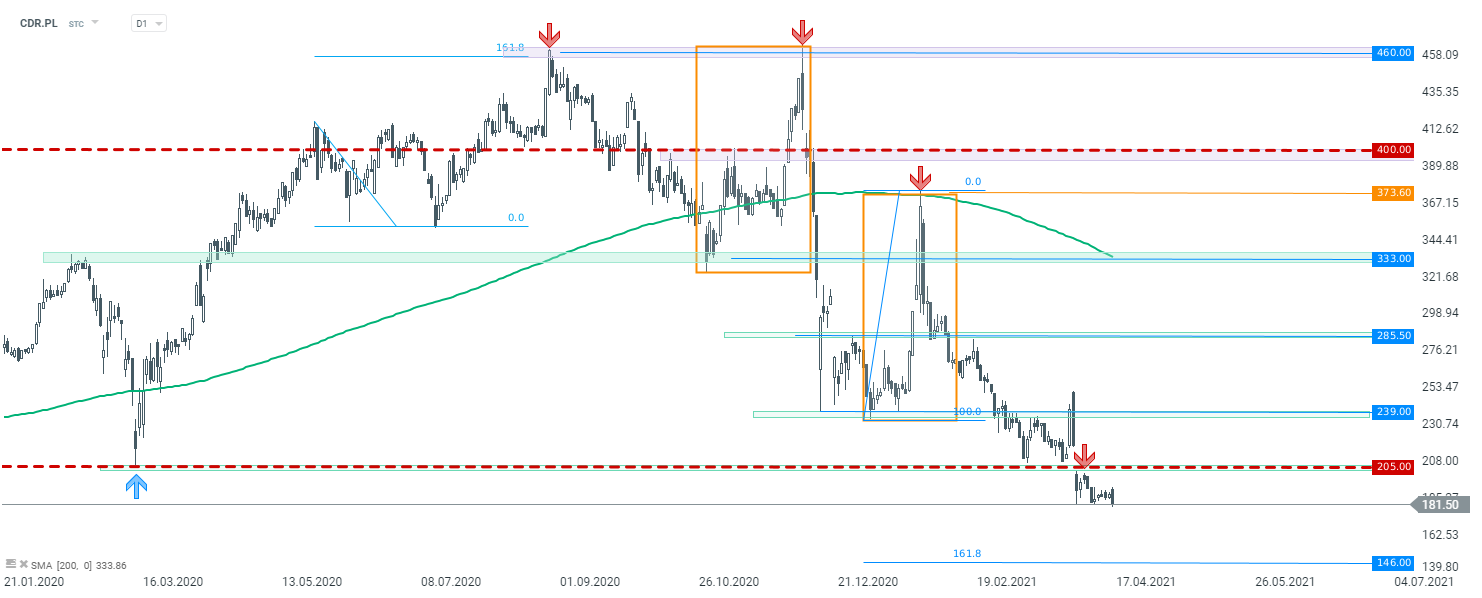 CD Projekt (CDR.PL) interwał D1. Źródło: xStation5