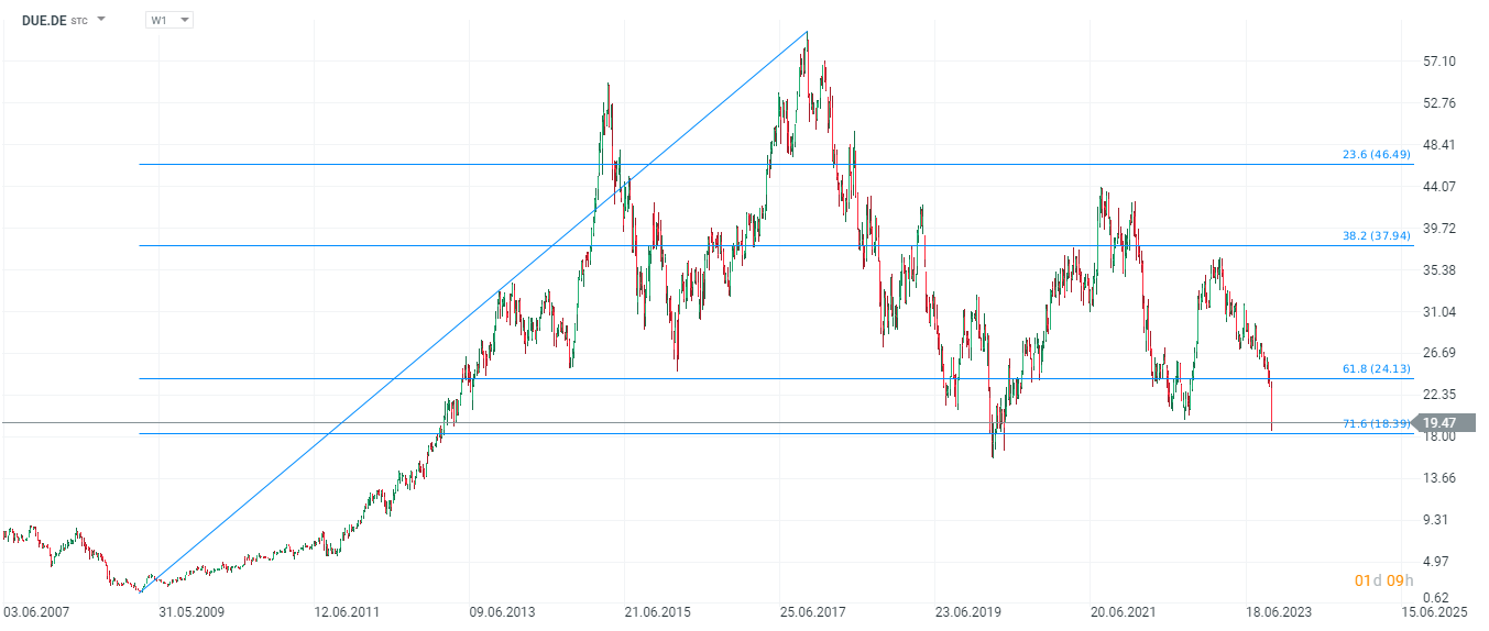 - Duerr potwierdził swoje prognozy na bieżący rok i oczekuje, że osiągnie 8% marżę EBIT. Z kolei w 2024 roku planuje wzrost sprzedaży na poziomie od 5% do 10%. W bieżącym kwartale spółka wstępnie podała, że odnotowała sprzedaż 1,15 miliarda EUR wobec 1,22 mld EUR szacunków przy niższej niż w pozostałych kwartałąch 7% marży EBIT.