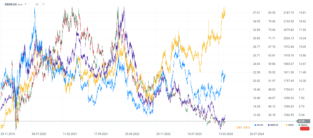 - Firmy wydobywcze mierzyły się w ostatnich kwartałach z szeregiem różnych wyzwań m.in. wzrostem kosztów i stratami operacyjnymi na dużych projektach. Między innymi z tego powodu akcje Sibanye czy Newmont radziły sobie tak słabo i notowane są na wieloletnich minimach. Dla części z nich złoto jest tylko dodatkiem do bazowej działalności na rynkach srebra, platyny czy palladu, które radziły sobie znacznie słabiej.