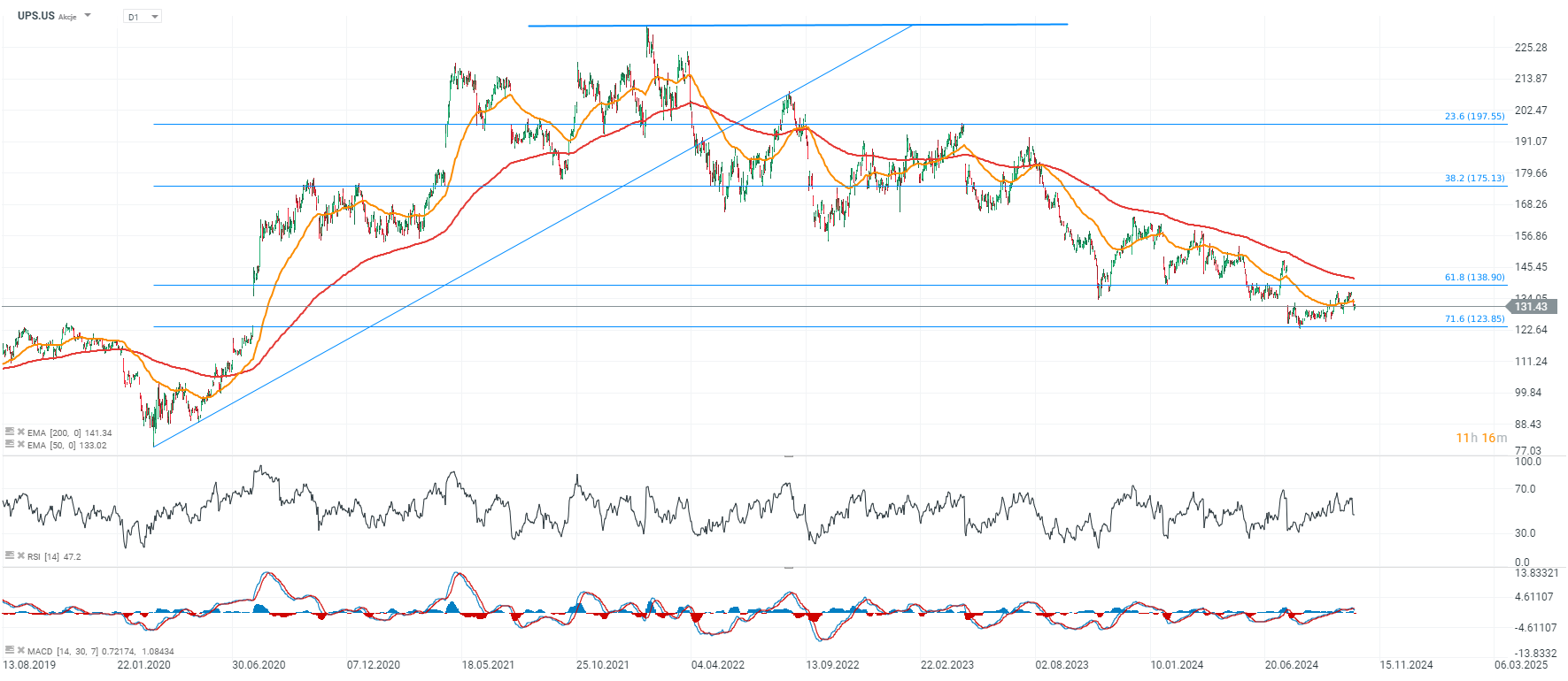 Akcje spółki specjalizującej się w usługach i wyposażeniu produkcji półprzewodników Lam Research (LAM.US) oraz największej, amerykańskiej firmy logistycznej UPS (UPS.US) zyskują dziś przed otwarciem rynku w USA prawie 6%. W pierwszym przypadku akcje Lam próbują przerwać fatalną passę spadkową, która trwała od lipca, a w drugim 'żegnają' wieloletnie minima i prawdopodobnie przetestują dziś 200-sesyjną średnią kroczącą.