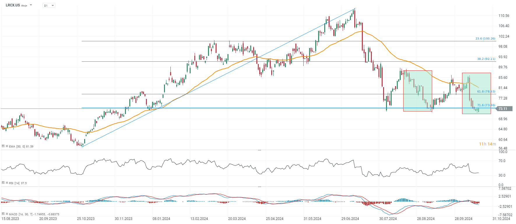 Mimo siły biznesu duża ekspozycja na Chiny nie służyła spółce w ostatnim czasie. Dodatkowo cześć rozwiązań Lam związanych jest z sektorem chipów niezwiązanych ze sztuczną inteligencją, gdzie wciąż widoczne jest spowolnienie. Niemniej jednak wyniki okazały się bardzo solidne, a oczekiwany spadek marż brutto nie przestraszył inwestorów.