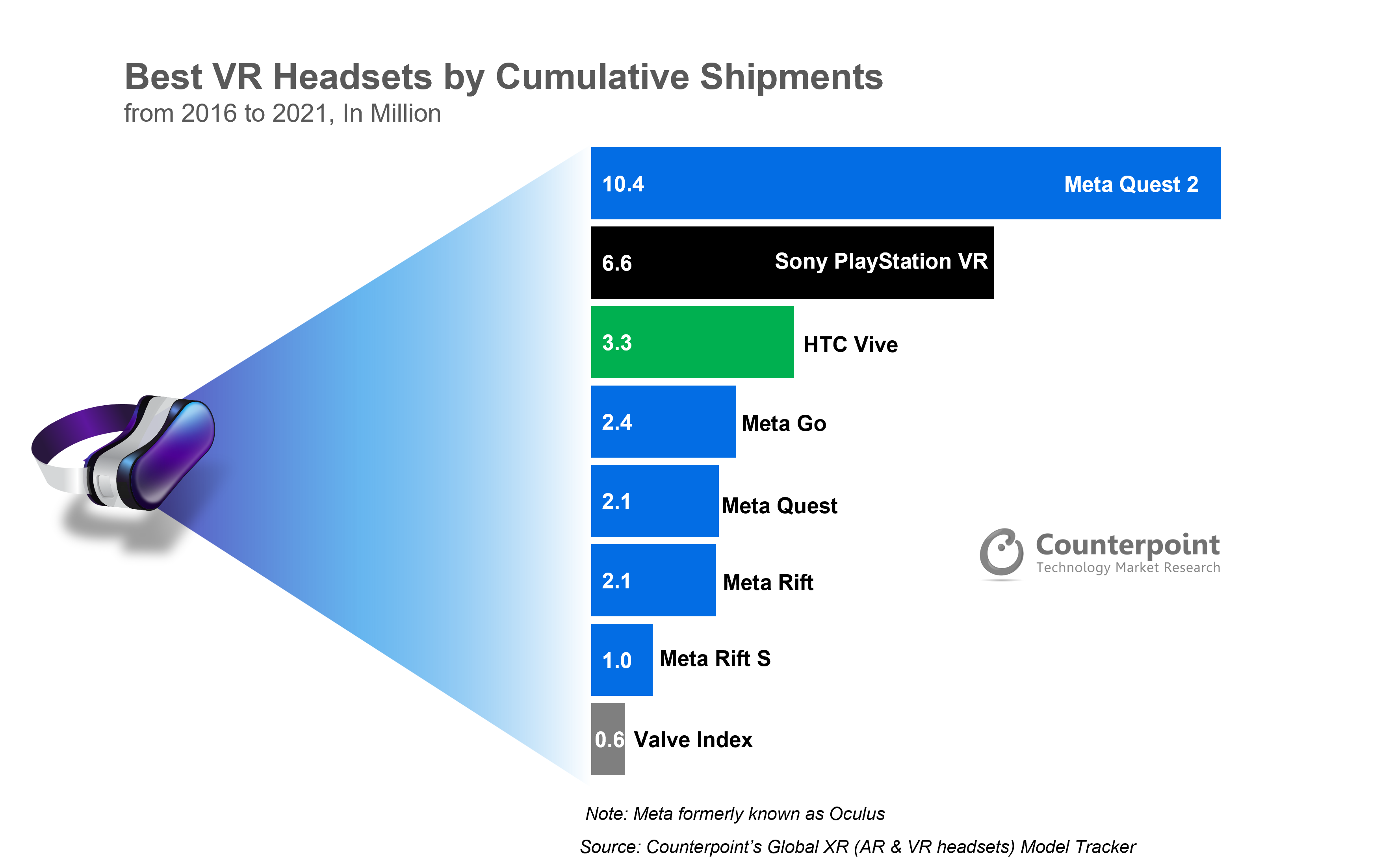 Zestawy Oculus wciąż popularnością biją największe konkurencyjne marki, 'dzielą i rządzą' na rynku nowych technologii wirtualnej rzeczywistości i cieszą się bardzo pozytywnymi opiniami użytkowników. Źródło: Counterpoint