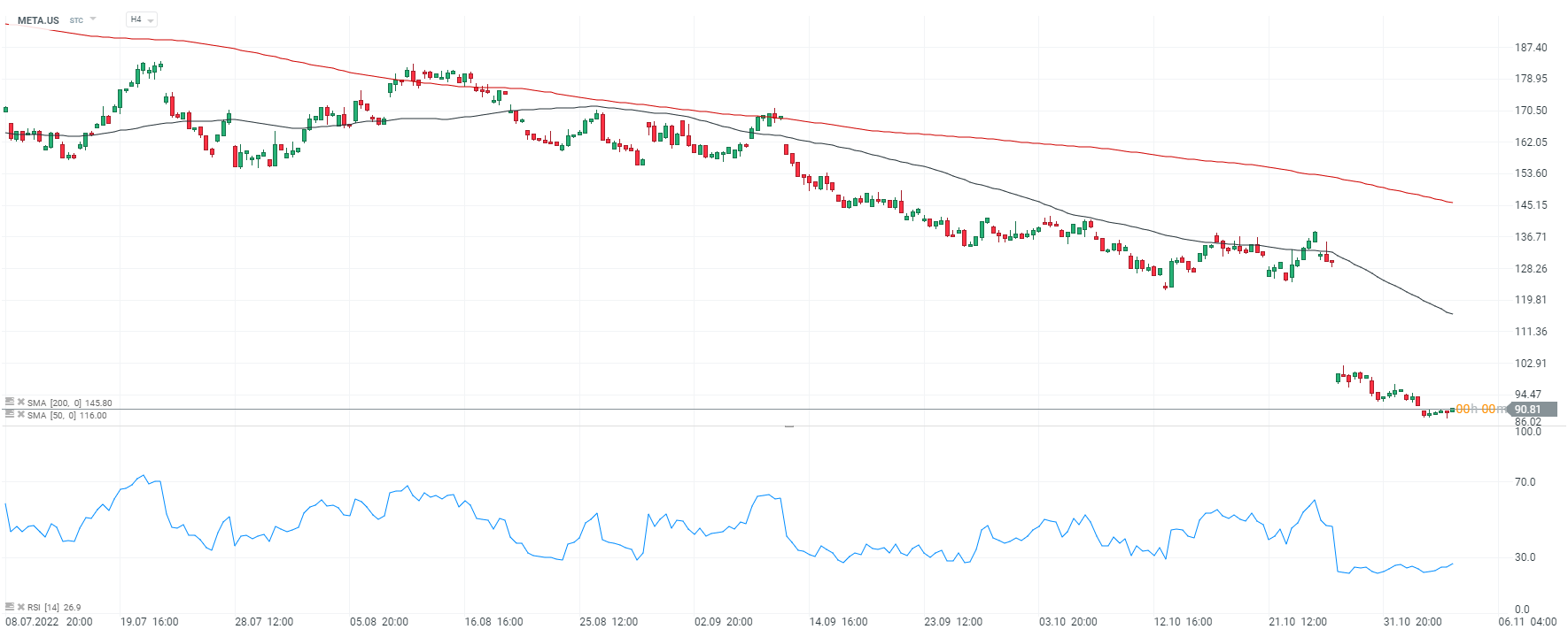 Akcje Meta Platforms (META.US). Interwał H4.