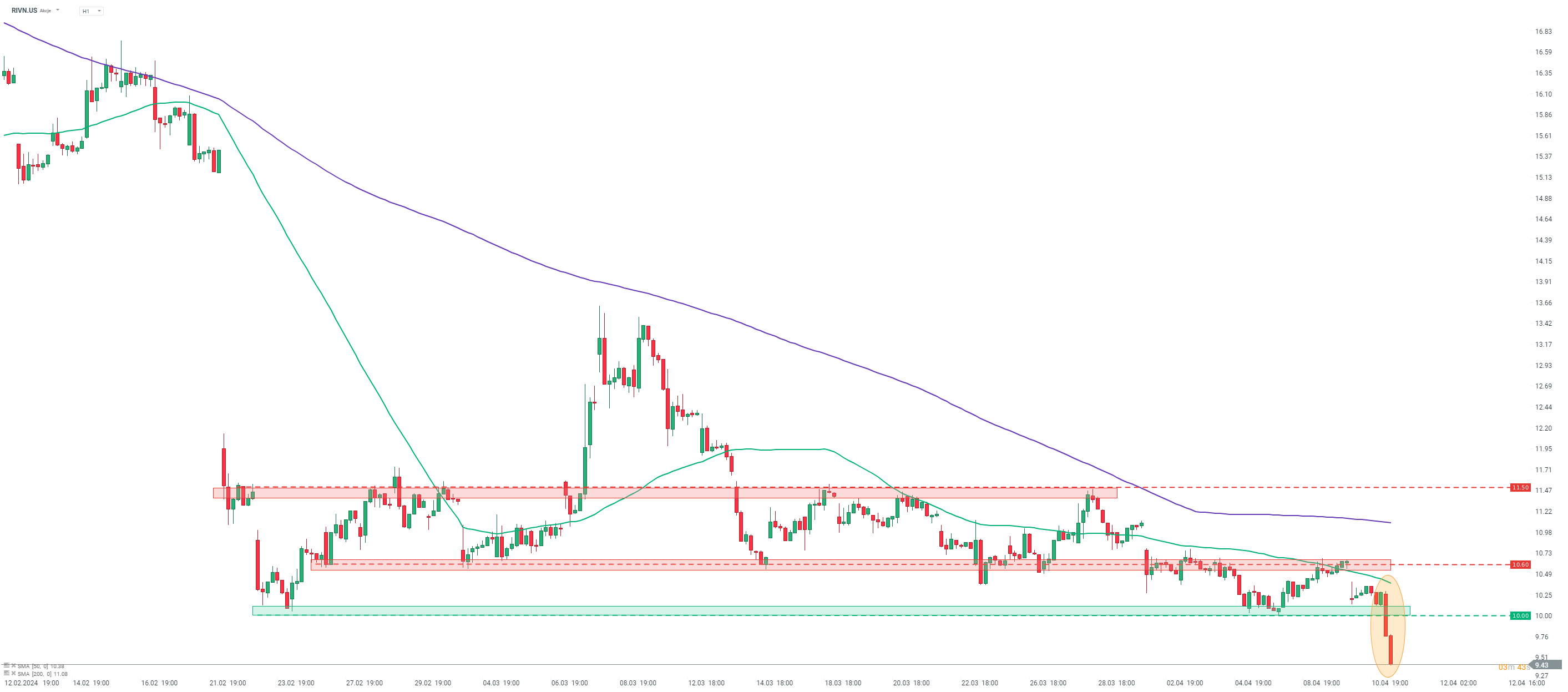 Kurs akcji Rivian Automotive osunął się dziś poniżej strefy wsparcia 10,00 USD i osiągnął najniższy poziom w historii. Akcje są notowane około 60% niżej od początku roku.