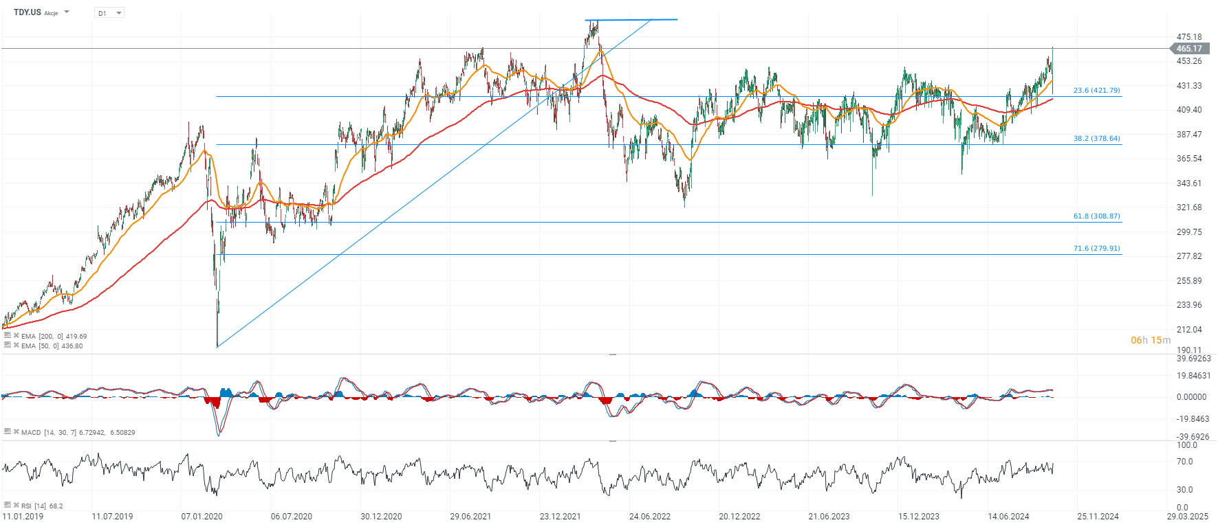 Akcje konglomeratu przemysłowego, dostawcy zaawansowanych usług i producenta elektroniki Teledyne Technologies (TDY.US) zyskują dziś 5% po lepszych, niż oczekiwano wynikach kwartalnych. Firma przekazała, że wzrost biznesu napędzany był przez wyniki sektora lotniczo-kosmicznego i obronnego.