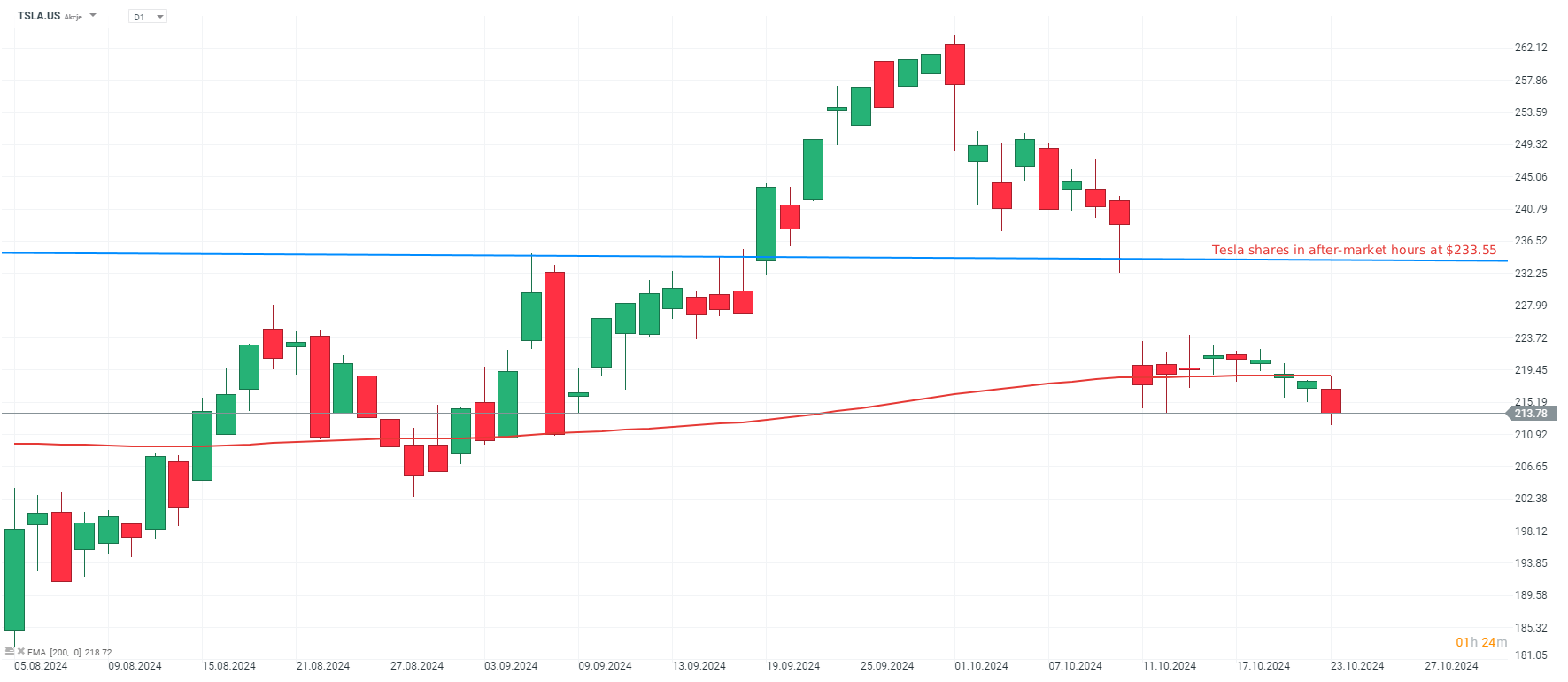 Akcje Tesli (TSLA.US), interwał D1