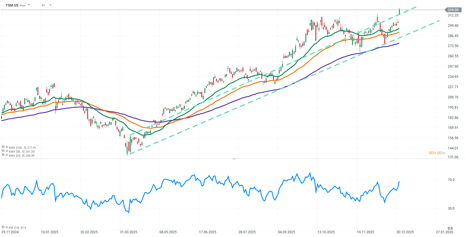 Dynamiczny wzrost kursu akcji TSMC sprawia, że rynek wycenia spółkę bardziej jako strategiczną infrastrukturę globalnej gospodarki opartej na danych niż tradycyjnego producenta chipów. Wysoka wycena oznacza niską tolerancję na potencjalne rozczarowania wynikami. Każda niespodzianka w wynikach finansowych lub opóźnienie w produkcji najnowocześniejszych węzłów może wywołać znaczną reakcję kursu.