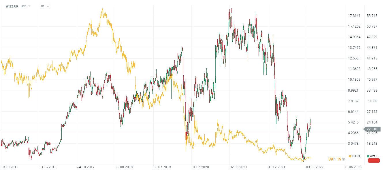 Akcje WizzAir (WIZZ.UK), interwał D1. Źródło: xStation5