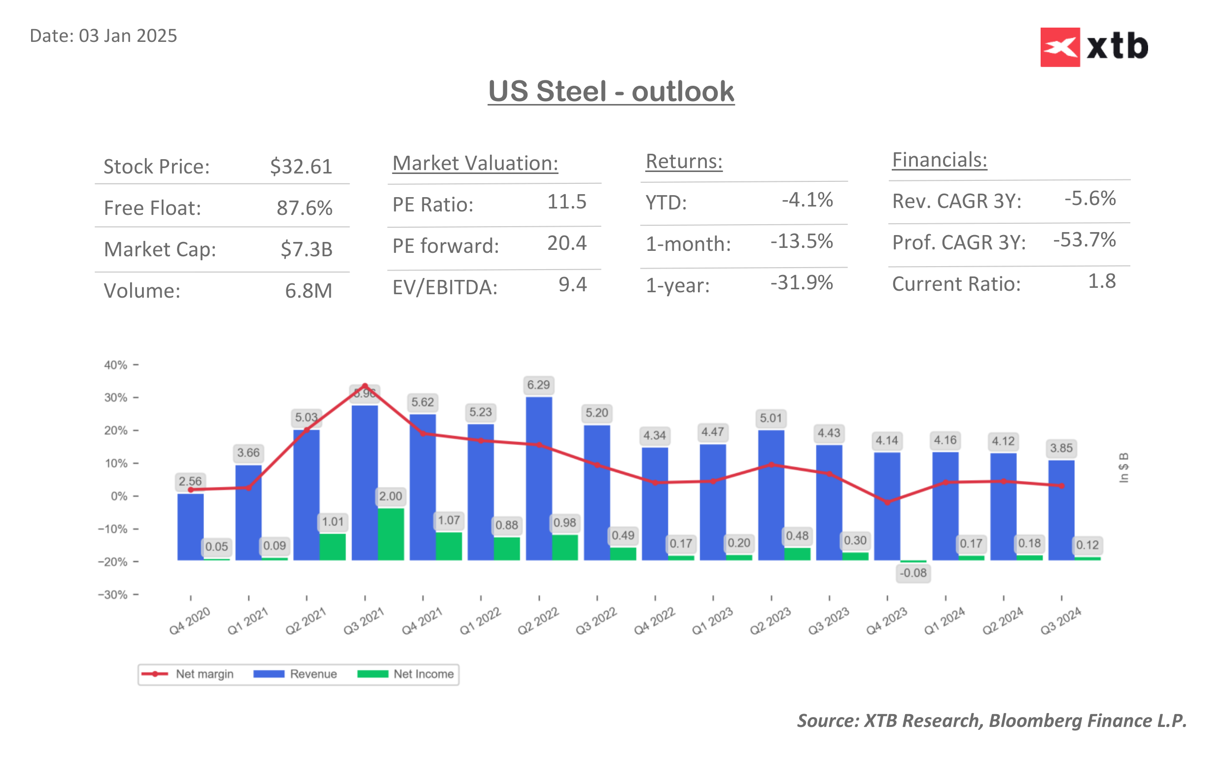 Stąd potencjalna decyzja Bidena nie powinna być zaskakująca, jednakże złożenie przez Nippon Steel wysokiej oferty pod sam koniec roku stanowiło dla niektórych inwestorów promyk nadziei na finalizację transakcji, co widać było w zachowaniu kursu. Uprawdopodobnieniem tego scenariusza mogła być także specjalna oferta w ramach przejęcia, o której poinformował The Washington Post. W ramach oferty spółka zaproponowała rządowi USA możliwość zawetowania ewentualnych redukcji w produkcji stali przez US Steel.