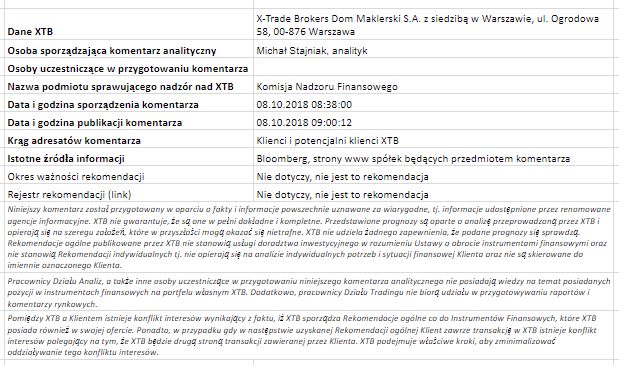 Ta publikacja handlowa jest informacyjna i edukacyjna. Nie jest rekomendacją inwestycyjną ani informacją rekomendującą lub sugerującą strategię inwestycyjną. W materiale nie sugerujemy żadnej strategii inwestycyjnej ani nie świadczymy usługi doradztwa inwestycyjnego. Materiał nie uwzględnia indywidualnej sytuacji finansowej, potrzeb i celów inwestycyjnych klienta. Nie jest też ofertą sprzedaży ani subskrypcji. Nie jest zaproszeniem do nabycia, reklamą ani promocją jakichkolwiek instrumentów finansowych. Publikację handlową przygotowaliśmy starannie i obiektywnie. Przedstawiamy stan faktyczny znany autorom w chwili tworzenia dokumentu. Nie umieszczamy w nim żadnych elementów oceniających. Informacje i badania oparte na historycznych danych lub wynikach oraz prognozy nie stanowią pewnego wskaźnika na przyszłość. Nie odpowiadamy za Twoje działania lub zaniechania, zwłaszcza za to, że zdecydujesz się nabyć lub zbyć instrumenty finansowe na podstawie informacji z tej publikacji handlowej. Nie odpowiadamy też za szkody, które mogą wynikać z bezpośredniego czy też pośredniego wykorzystania tych informacji. Inwestowanie jest ryzykowne. Inwestuj odpowiedzialnie.