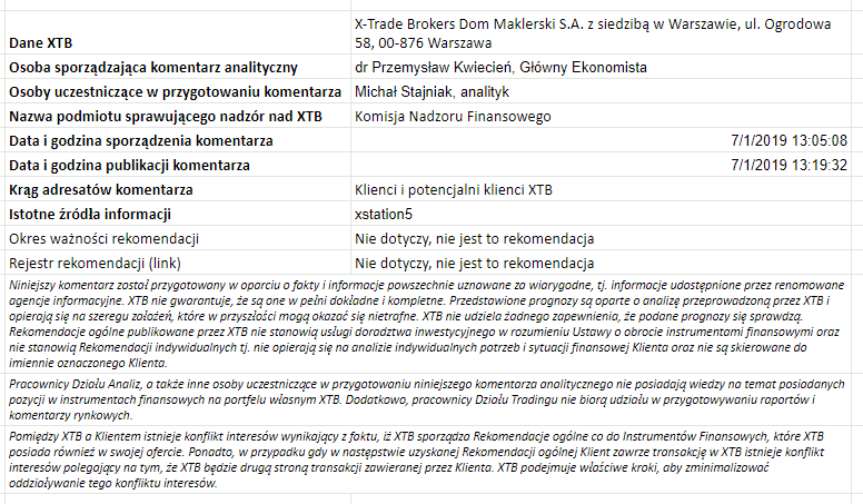 Ta publikacja handlowa jest informacyjna i edukacyjna. Nie jest rekomendacją inwestycyjną ani informacją rekomendującą lub sugerującą strategię inwestycyjną. W materiale nie sugerujemy żadnej strategii inwestycyjnej ani nie świadczymy usługi doradztwa inwestycyjnego. Materiał nie uwzględnia indywidualnej sytuacji finansowej, potrzeb i celów inwestycyjnych klienta. Nie jest też ofertą sprzedaży ani subskrypcji. Nie jest zaproszeniem do nabycia, reklamą ani promocją jakichkolwiek instrumentów finansowych. Publikację handlową przygotowaliśmy starannie i obiektywnie. Przedstawiamy stan faktyczny znany autorom w chwili tworzenia dokumentu. Nie umieszczamy w nim żadnych elementów oceniających. Informacje i badania oparte na historycznych danych lub wynikach oraz prognozy nie stanowią pewnego wskaźnika na przyszłość. Nie odpowiadamy za Twoje działania lub zaniechania, zwłaszcza za to, że zdecydujesz się nabyć lub zbyć instrumenty finansowe na podstawie informacji z tej publikacji handlowej. Nie odpowiadamy też za szkody, które mogą wynikać z bezpośredniego czy też pośredniego wykorzystania tych informacji. Inwestowanie jest ryzykowne. Inwestuj odpowiedzialnie.