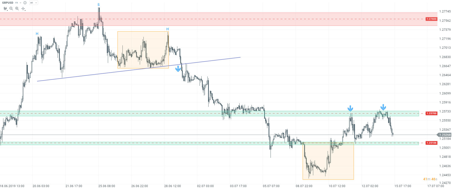 Kurs funta odbija od strefy oporowej przy 1,2570. Źródło: xStation5