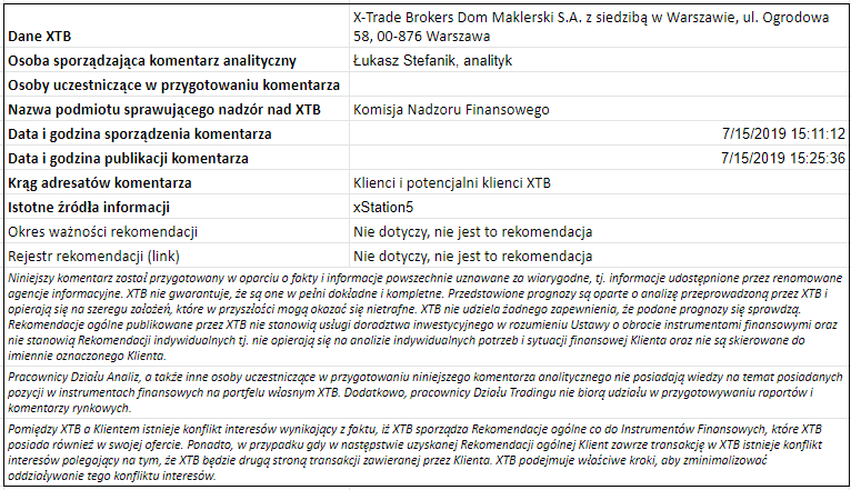 Ta publikacja handlowa jest informacyjna i edukacyjna. Nie jest rekomendacją inwestycyjną ani informacją rekomendującą lub sugerującą strategię inwestycyjną. W materiale nie sugerujemy żadnej strategii inwestycyjnej ani nie świadczymy usługi doradztwa inwestycyjnego. Materiał nie uwzględnia indywidualnej sytuacji finansowej, potrzeb i celów inwestycyjnych klienta. Nie jest też ofertą sprzedaży ani subskrypcji. Nie jest zaproszeniem do nabycia, reklamą ani promocją jakichkolwiek instrumentów finansowych. Publikację handlową przygotowaliśmy starannie i obiektywnie. Przedstawiamy stan faktyczny znany autorom w chwili tworzenia dokumentu. Nie umieszczamy w nim żadnych elementów oceniających. Informacje i badania oparte na historycznych danych lub wynikach oraz prognozy nie stanowią pewnego wskaźnika na przyszłość. Nie odpowiadamy za Twoje działania lub zaniechania, zwłaszcza za to, że zdecydujesz się nabyć lub zbyć instrumenty finansowe na podstawie informacji z tej publikacji handlowej. Nie odpowiadamy też za szkody, które mogą wynikać z bezpośredniego czy też pośredniego wykorzystania tych informacji. Inwestowanie jest ryzykowne. Inwestuj odpowiedzialnie.