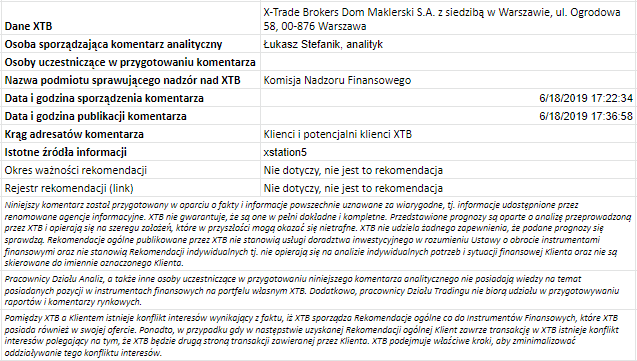 Ta publikacja handlowa jest informacyjna i edukacyjna. Nie jest rekomendacją inwestycyjną ani informacją rekomendującą lub sugerującą strategię inwestycyjną. W materiale nie sugerujemy żadnej strategii inwestycyjnej ani nie świadczymy usługi doradztwa inwestycyjnego. Materiał nie uwzględnia indywidualnej sytuacji finansowej, potrzeb i celów inwestycyjnych klienta. Nie jest też ofertą sprzedaży ani subskrypcji. Nie jest zaproszeniem do nabycia, reklamą ani promocją jakichkolwiek instrumentów finansowych. Publikację handlową przygotowaliśmy starannie i obiektywnie. Przedstawiamy stan faktyczny znany autorom w chwili tworzenia dokumentu. Nie umieszczamy w nim żadnych elementów oceniających. Informacje i badania oparte na historycznych danych lub wynikach oraz prognozy nie stanowią pewnego wskaźnika na przyszłość. Nie odpowiadamy za Twoje działania lub zaniechania, zwłaszcza za to, że zdecydujesz się nabyć lub zbyć instrumenty finansowe na podstawie informacji z tej publikacji handlowej. Nie odpowiadamy też za szkody, które mogą wynikać z bezpośredniego czy też pośredniego wykorzystania tych informacji. Inwestowanie jest ryzykowne. Inwestuj odpowiedzialnie.
