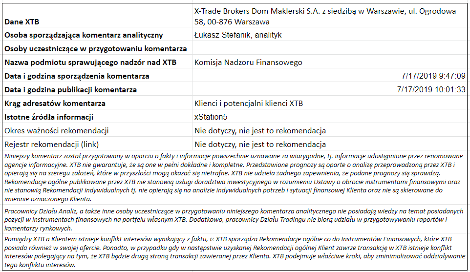 Ta publikacja handlowa jest informacyjna i edukacyjna. Nie jest rekomendacją inwestycyjną ani informacją rekomendującą lub sugerującą strategię inwestycyjną. W materiale nie sugerujemy żadnej strategii inwestycyjnej ani nie świadczymy usługi doradztwa inwestycyjnego. Materiał nie uwzględnia indywidualnej sytuacji finansowej, potrzeb i celów inwestycyjnych klienta. Nie jest też ofertą sprzedaży ani subskrypcji. Nie jest zaproszeniem do nabycia, reklamą ani promocją jakichkolwiek instrumentów finansowych. Publikację handlową przygotowaliśmy starannie i obiektywnie. Przedstawiamy stan faktyczny znany autorom w chwili tworzenia dokumentu. Nie umieszczamy w nim żadnych elementów oceniających. Informacje i badania oparte na historycznych danych lub wynikach oraz prognozy nie stanowią pewnego wskaźnika na przyszłość. Nie odpowiadamy za Twoje działania lub zaniechania, zwłaszcza za to, że zdecydujesz się nabyć lub zbyć instrumenty finansowe na podstawie informacji z tej publikacji handlowej. Nie odpowiadamy też za szkody, które mogą wynikać z bezpośredniego czy też pośredniego wykorzystania tych informacji. Inwestowanie jest ryzykowne. Inwestuj odpowiedzialnie.