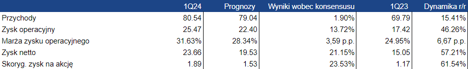 Spółka osiągnęła w 1Q24 przychody na poziomie 80,54 mld $ (+15,41% r/r), przebijając konsensus o 1,9%. Wśród segmentów najbardziej pozytywnie odebraną informacją jest utrzymanie wzrostowej dynamiki przychodów z Google Cloud. Choć Alphabet wciąż nie może się pochwalić tak wysokimi wartościami, jak Microsoft (segment Azure wzrósł w 1Q24 o 31%), mimo że ma on wciąż mniejszy market share niż konkurent, tak różnica między dynamikami nie jest już tak wyraźna jak w poprzednich kwartałach.