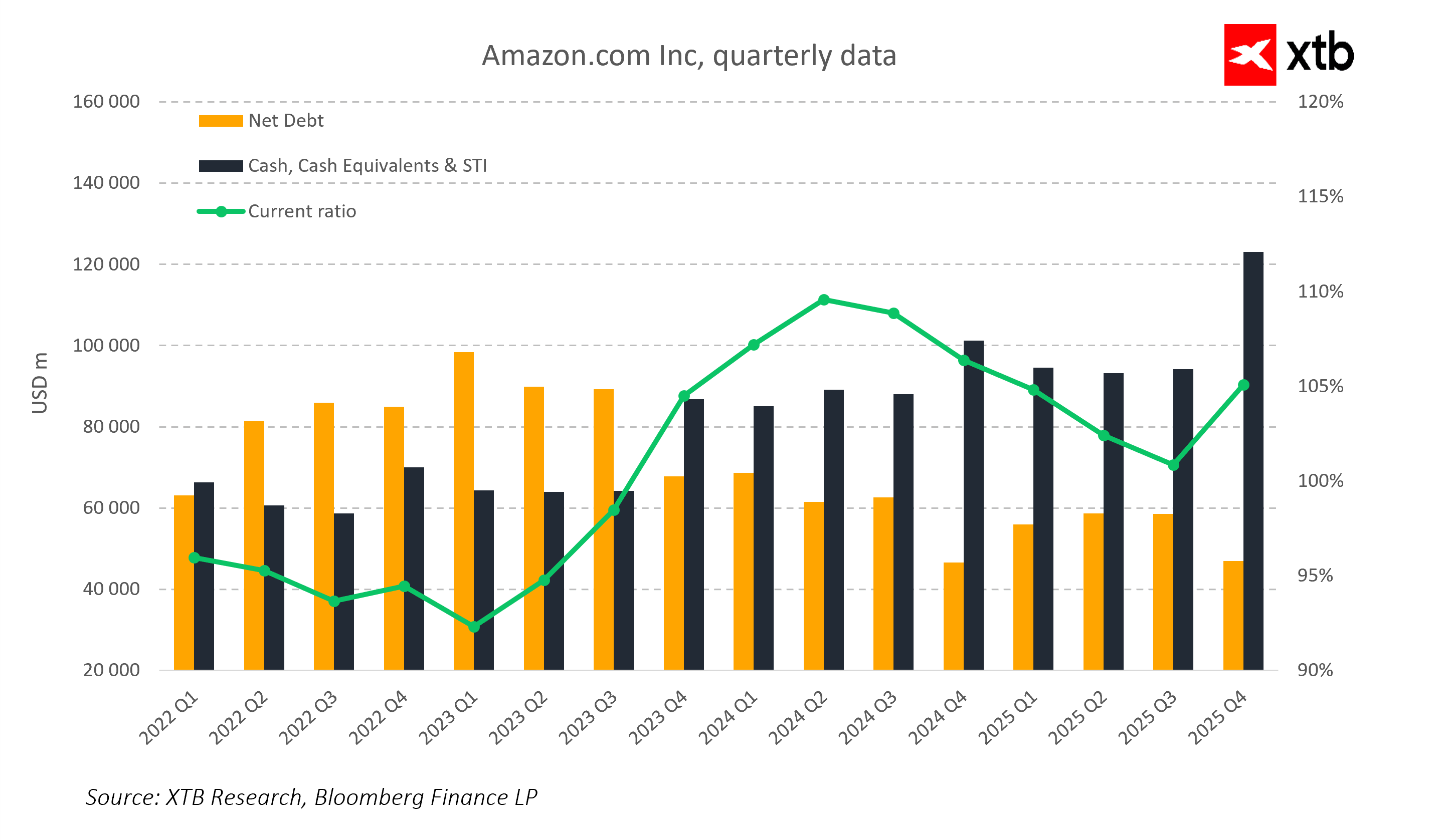 Skala inwestycji kapitałowych pozostaje jednym z głównych punktów napięcia pomiędzy spółką a rynkiem. Amazon znajduje się w fazie, w której CapEx jest jednocześnie fundamentem przyszłej przewagi i źródłem krótkoterminowej presji na wyniki finansowe.