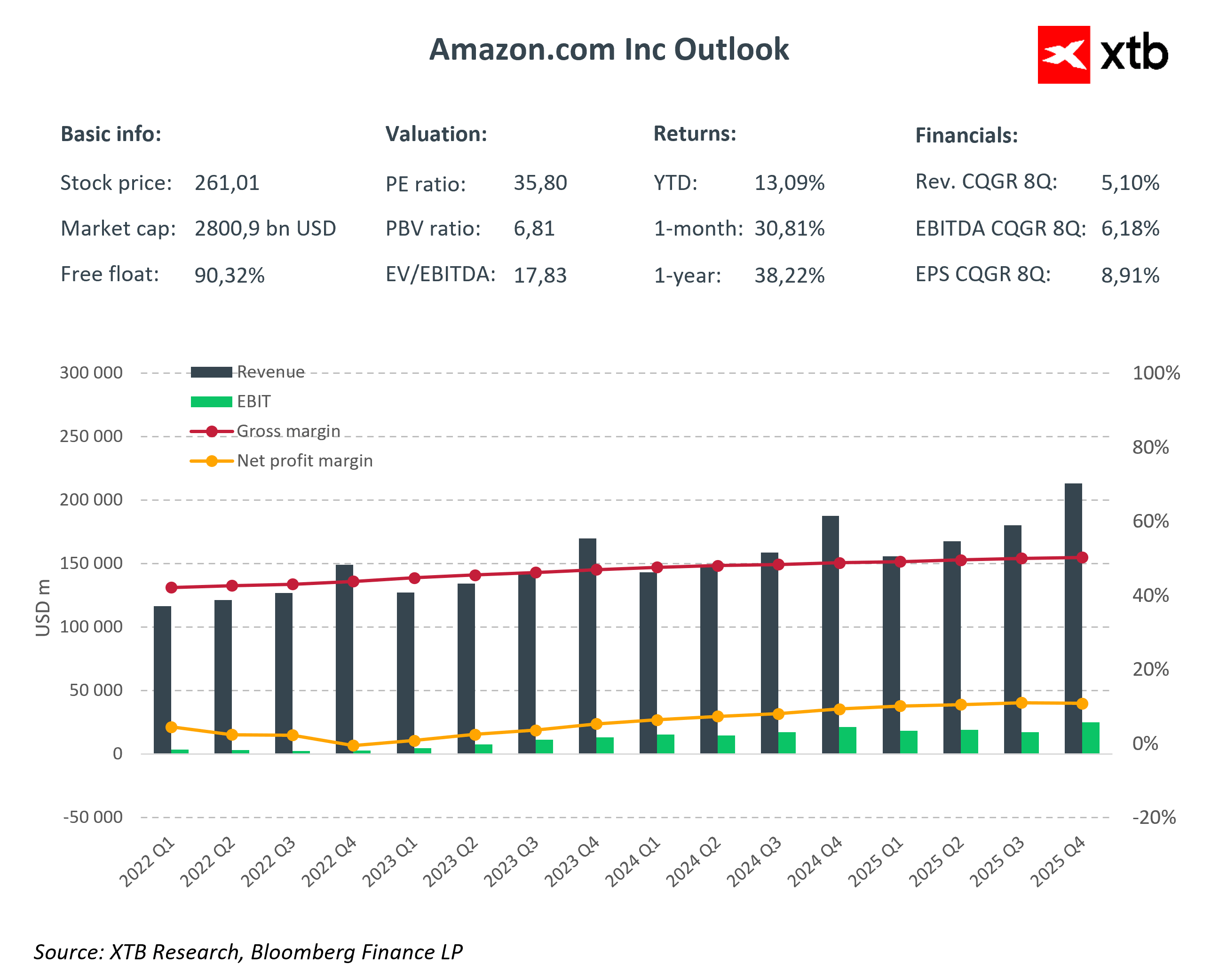 Amazon znajduje się w fazie, w której rynek ocenia już nie tempo wzrostu, ale jego jakość w warunkach intensywnego cyklu inwestycyjnego