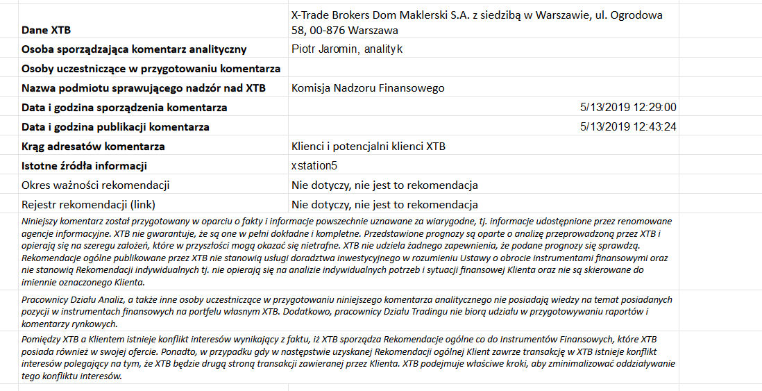 Ta publikacja handlowa jest informacyjna i edukacyjna. Nie jest rekomendacją inwestycyjną ani informacją rekomendującą lub sugerującą strategię inwestycyjną. W materiale nie sugerujemy żadnej strategii inwestycyjnej ani nie świadczymy usługi doradztwa inwestycyjnego. Materiał nie uwzględnia indywidualnej sytuacji finansowej, potrzeb i celów inwestycyjnych klienta. Nie jest też ofertą sprzedaży ani subskrypcji. Nie jest zaproszeniem do nabycia, reklamą ani promocją jakichkolwiek instrumentów finansowych. Publikację handlową przygotowaliśmy starannie i obiektywnie. Przedstawiamy stan faktyczny znany autorom w chwili tworzenia dokumentu. Nie umieszczamy w nim żadnych elementów oceniających. Informacje i badania oparte na historycznych danych lub wynikach oraz prognozy nie stanowią pewnego wskaźnika na przyszłość. Nie odpowiadamy za Twoje działania lub zaniechania, zwłaszcza za to, że zdecydujesz się nabyć lub zbyć instrumenty finansowe na podstawie informacji z tej publikacji handlowej. Nie odpowiadamy też za szkody, które mogą wynikać z bezpośredniego czy też pośredniego wykorzystania tych informacji. Inwestowanie jest ryzykowne. Inwestuj odpowiedzialnie.