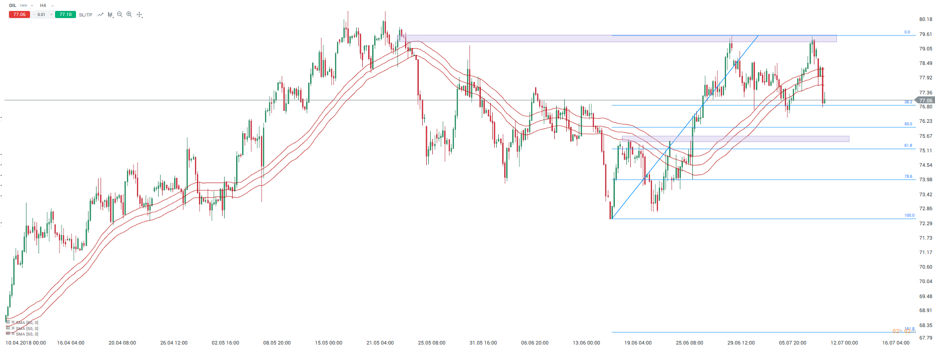 Ropa Brent (OIL) reaguje na szczyty z końcówki maja