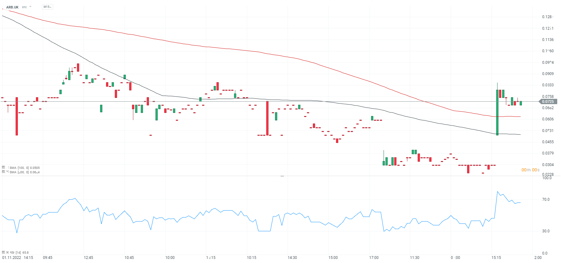 Akcje Argo Blockchain (ARB.UK), interwał M15. Źrórdło: xStation5