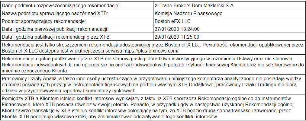 Bank rekomenduje zajęcie pozycji długiej z następującymi parametrami: