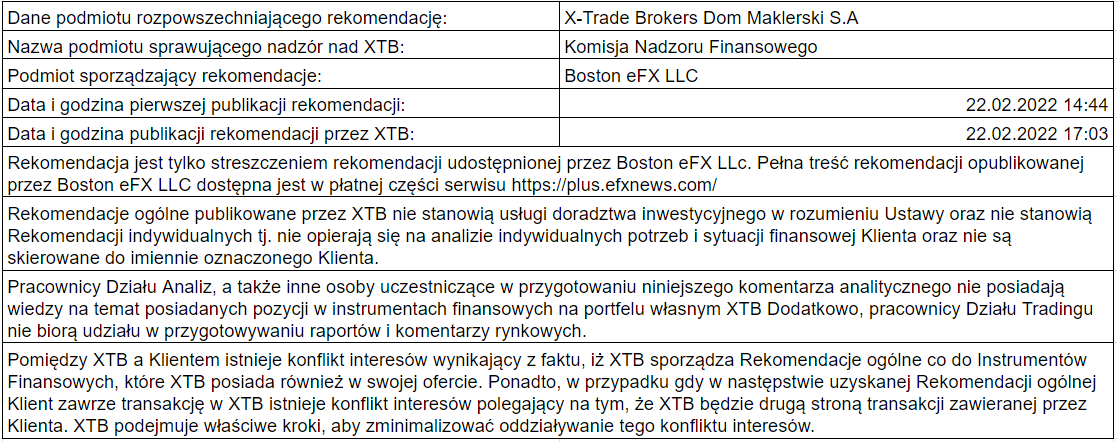 Bank zaleca zajęcie długiej pozycji na tej parze przy następujących poziomach: