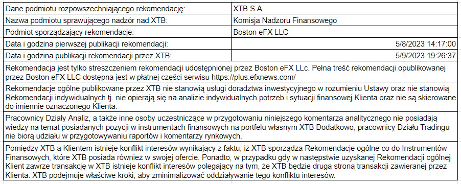 Bank rekomenduje zajęcie krótkiej pozycji na tej parze przy następujących poziomach: