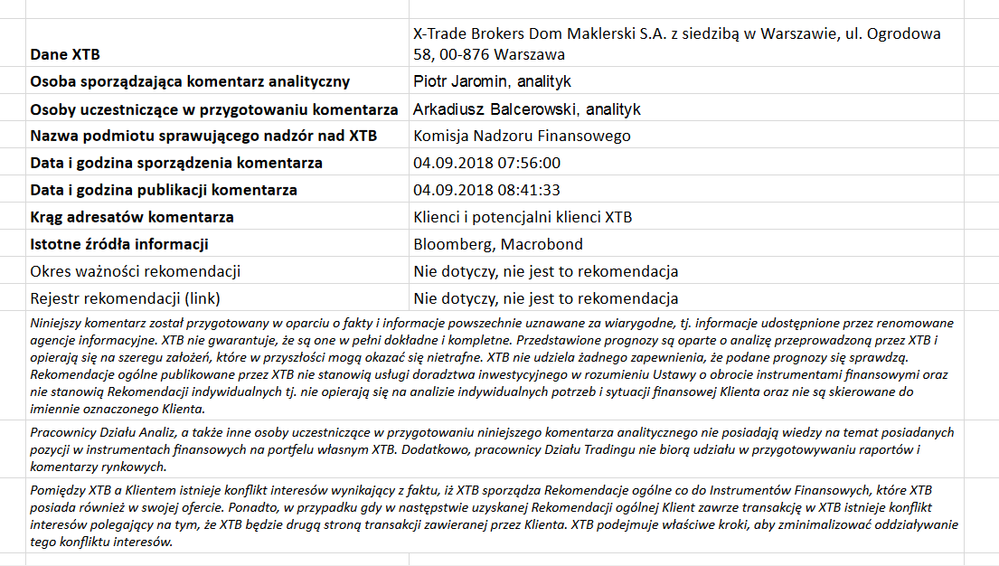 Ta publikacja handlowa jest informacyjna i edukacyjna. Nie jest rekomendacją inwestycyjną ani informacją rekomendującą lub sugerującą strategię inwestycyjną. W materiale nie sugerujemy żadnej strategii inwestycyjnej ani nie świadczymy usługi doradztwa inwestycyjnego. Materiał nie uwzględnia indywidualnej sytuacji finansowej, potrzeb i celów inwestycyjnych klienta. Nie jest też ofertą sprzedaży ani subskrypcji. Nie jest zaproszeniem do nabycia, reklamą ani promocją jakichkolwiek instrumentów finansowych. Publikację handlową przygotowaliśmy starannie i obiektywnie. Przedstawiamy stan faktyczny znany autorom w chwili tworzenia dokumentu. Nie umieszczamy w nim żadnych elementów oceniających. Informacje i badania oparte na historycznych danych lub wynikach oraz prognozy nie stanowią pewnego wskaźnika na przyszłość. Nie odpowiadamy za Twoje działania lub zaniechania, zwłaszcza za to, że zdecydujesz się nabyć lub zbyć instrumenty finansowe na podstawie informacji z tej publikacji handlowej. Nie odpowiadamy też za szkody, które mogą wynikać z bezpośredniego czy też pośredniego wykorzystania tych informacji. Inwestowanie jest ryzykowne. Inwestuj odpowiedzialnie.