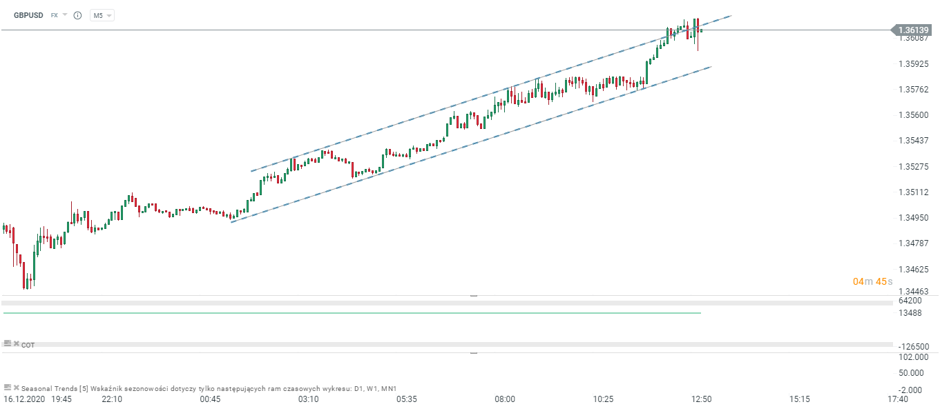 Zgodnie z oczekiwaniami brak zmian w polityce monetarnej BoE. Stopa na poziomie 0,1%, program QE bez zmian na poziomie 895 mld GBP. Decyzja podjęta jednomyślnie. BoE wskazuje, że Q4 będzie słabszy od oczekiwań, a zamknięcie gospodarki odniesie piętno również na Q1 przyszłego roku. Jednocześnie podkreśla, że szczepionka obniża czynniki ryzyka dla wzrostu. BoE wskazuje również, że istnieje szansa na zmianę parametrów technicznych skupu aktywów, jeśli zajdzie taka potrzeba. Może zdecydowac się również na zaikeszenie tempa skupów. Reakcja rynku jest znikoma, GBPUSD pozostaje wysoko, początkowo lekko kurs cofał się w odpowiedzi na wypuszczenie oświadczenia.