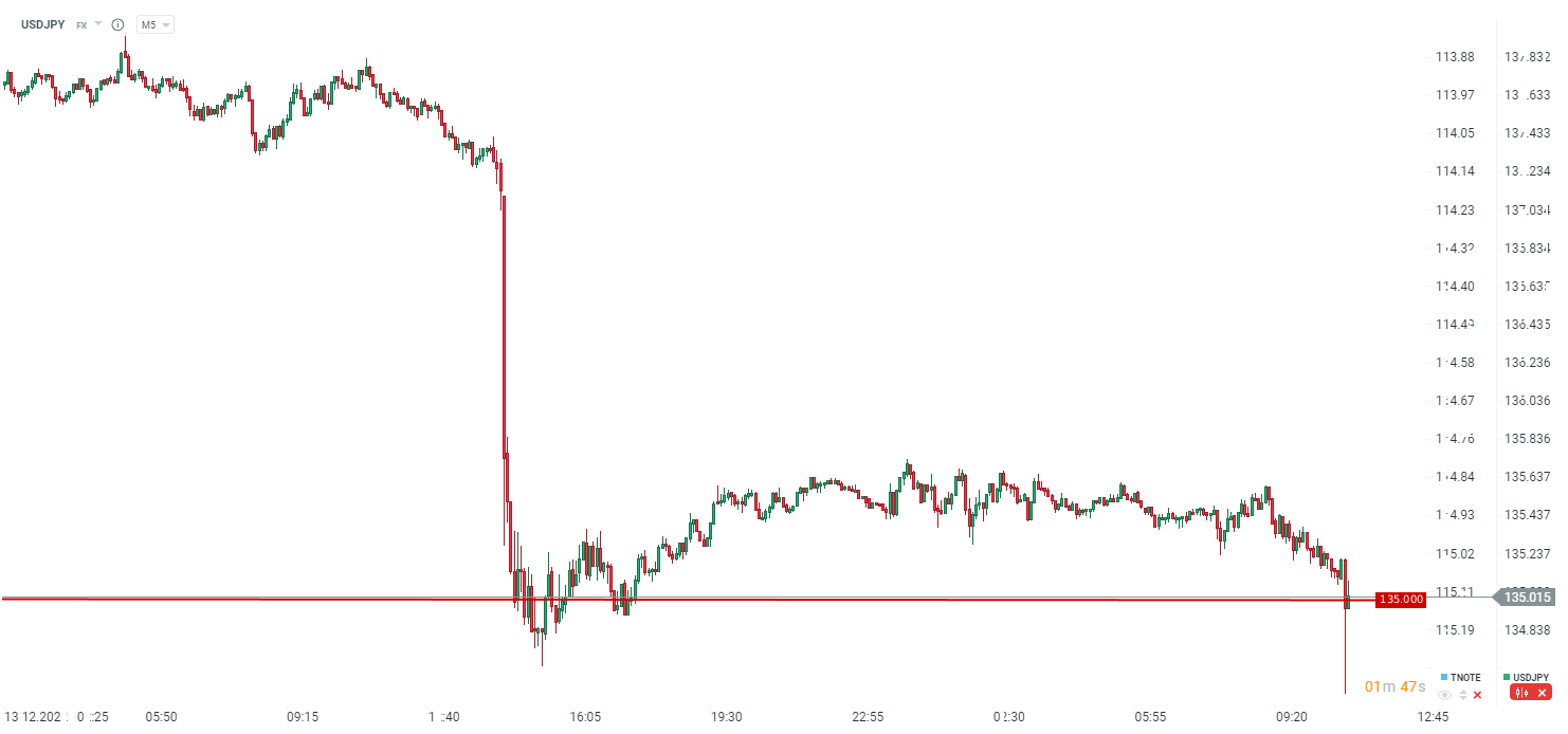 USDJPY spadł mocno po tej informacji, ale spadki te są obecnie redukowane. Wczorajszy silny ruch w dół to z kolei efekt publikacji inflacji z USA. Źródło: xStation5