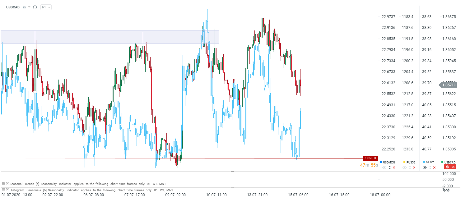 USDCAD początkowo rósł, ale teraz CAD próbuje odrabiać straty. Widać, że mieliśmy do czynienia z krótkoterminową dywergencją, która jest domykana. Co ważniejsze ropa naftowa kolejny raz spada od ważnego poziomu 41 USD za baryłkę.