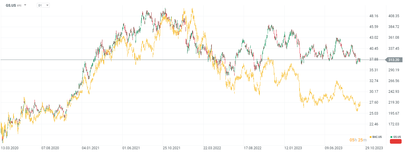 W ubiegłym kwartale handel i doradztwo stanowiły dwie trzecie przychodów banku i to wciąż 'trading' pozostaje jego głównym źródłem zysków i przychodów. W 2023 roku fuzje, IPO i emisja długu nie przyniosły 'żniw' w środowisku wyższych stóp i drogiego długu. Bank wskazał też na odpisy na straty związane z nieruchomościami komercyjnymi. Bank w III kw. kwartale odnotował odpis 506 mln USD (pożyczki GreenSky) i 358 mln USD z tytułu nieruchomości CRE. Analitycy Wells Fargo skomentowali wyniki jako poniżej średniej wobec wyższych kosztów i zwrotów netto poniżej celu.